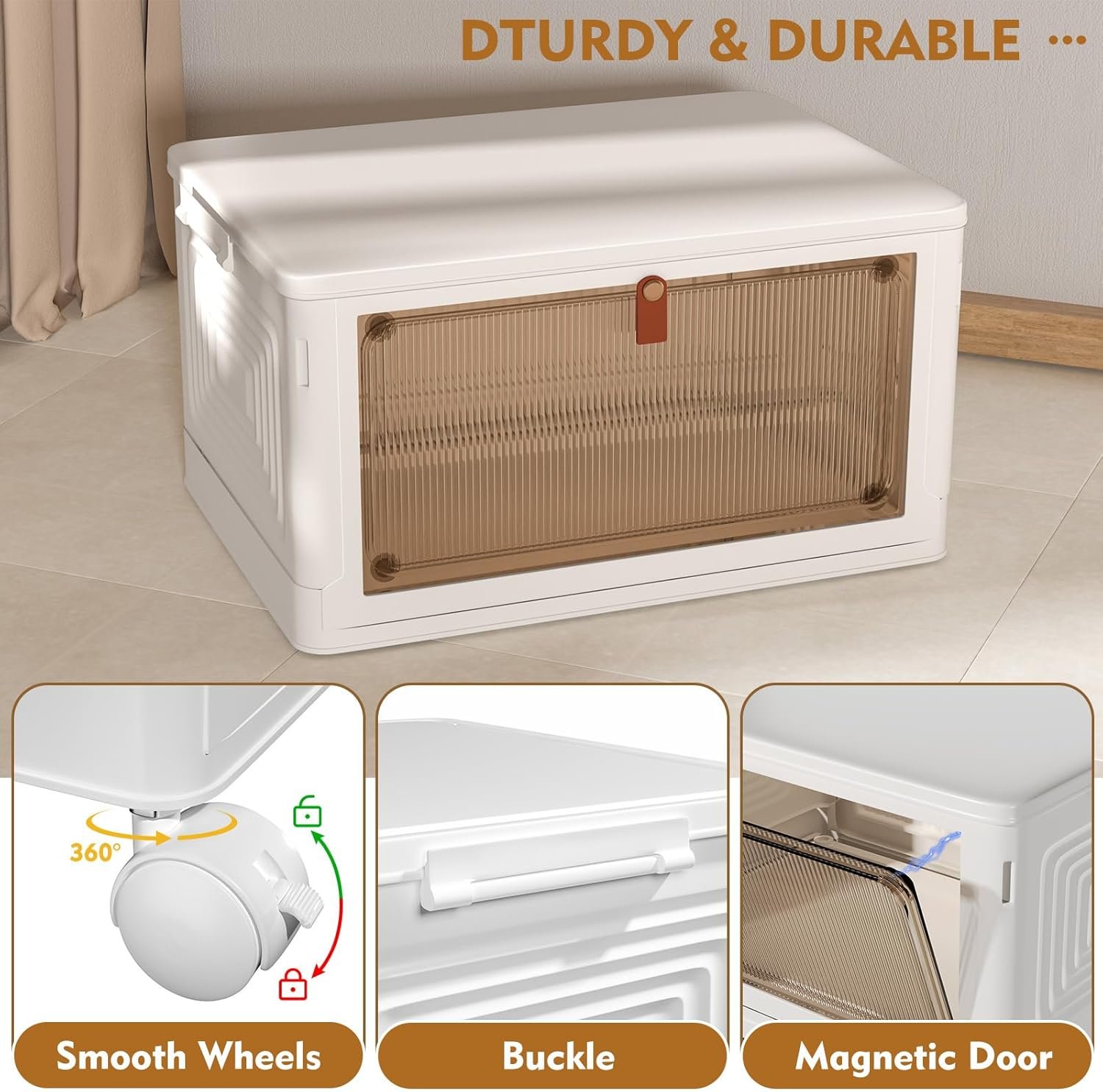 Material: Harder PP–360° Rotatable & Lockable Wheels, Magnetic Doors, Translucent Visible Doors