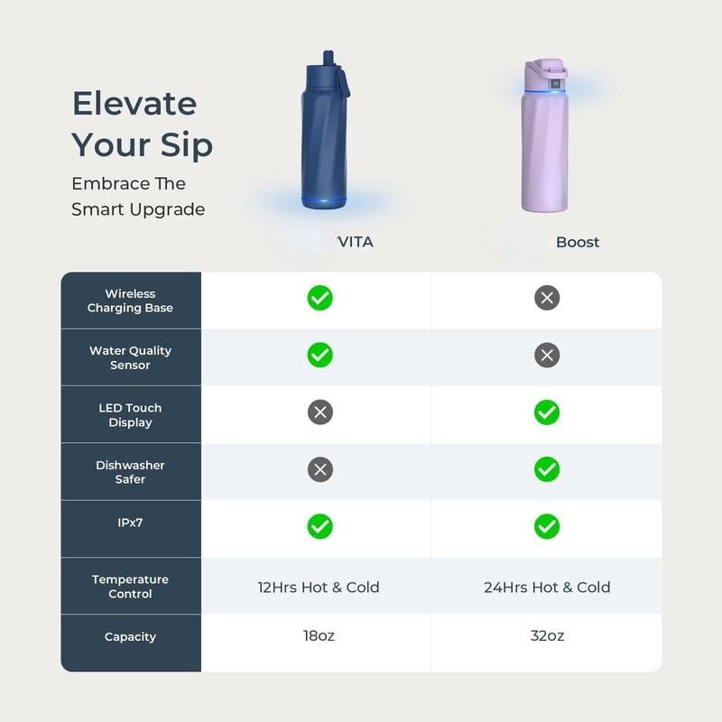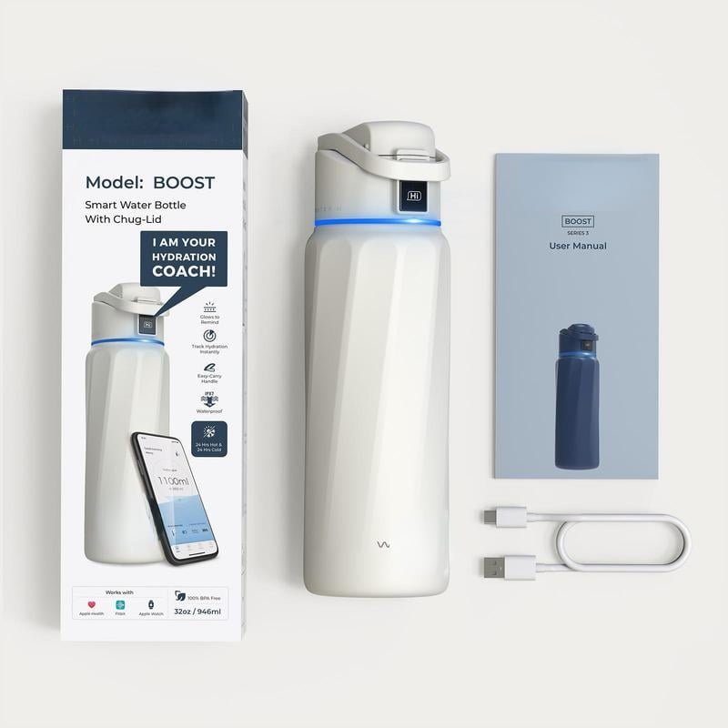 Boost Insulated Stainless Steel Smart Water Bottle, 32 oz Bluetooth Intake Smart Tracker & Reminder to Drink Drinkware Flasks