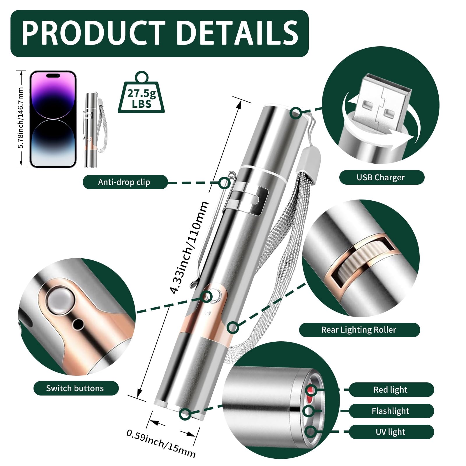 The red laser dot moves in a 360-degree range, stimulating the natural hunting instincts of pets. The toy also includes an LED light and UV detection function, which can be used for additional purposes such as detecting counterfeit money or pet urine traces.