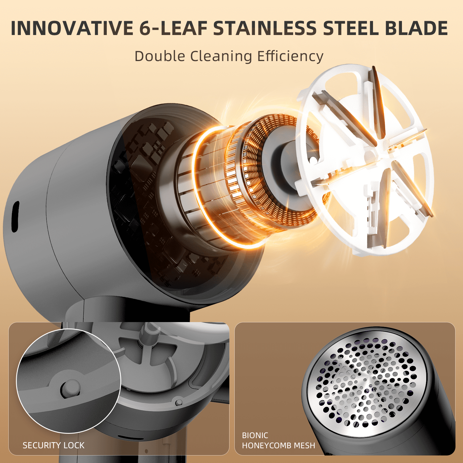 - 【Innovative Blades】 — Upgraded 6 Leaf Blades, razor-sharp, double cleaning efficiency compared to the 3-blade cutter head, with 3 speeds to cater to different fabric types and pilling intensities without damaging your beloved textiles. Tips: It is recommended to use it by laying the garment flat on a hard surface