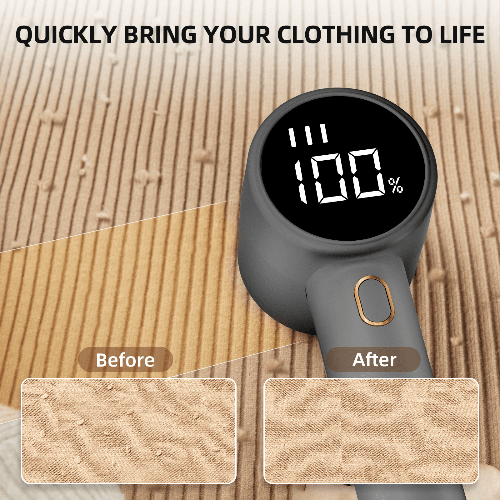 FrSara Fabric Shaver, Lint Remover Rechargeable, Electric Portable Sweater Defuzzer with 3 Speeds, 6 Leaf Blades, Digital LED Display to Remove Pilling for Clothes, Furniture,Blanket