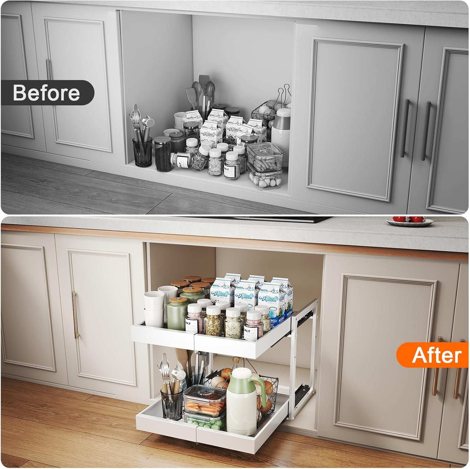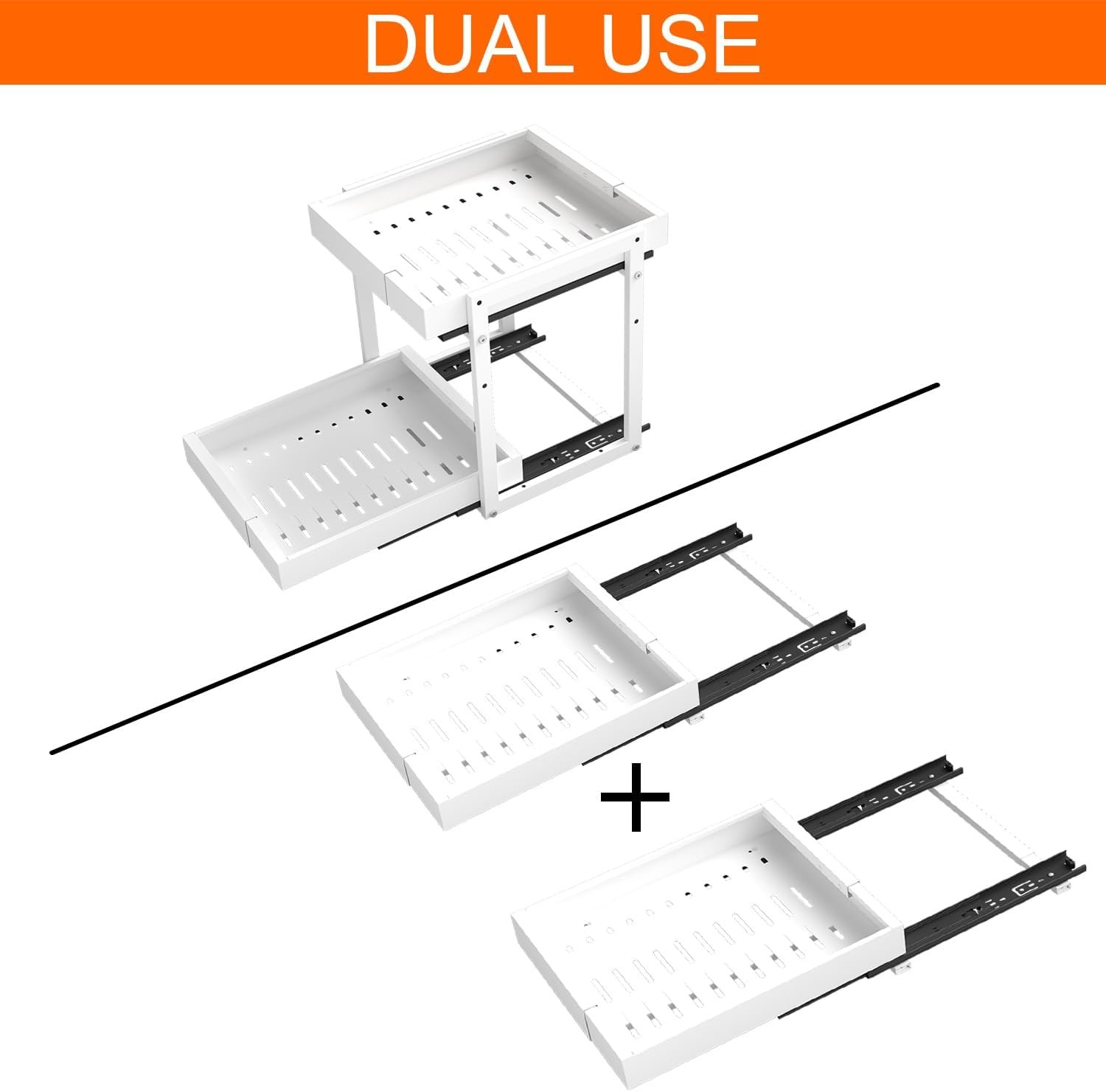 Golener 2-Tier Expandable Pull Out Cabinet Organizer – Slide Out Drawers for Kitchen Cabinets, Bathroom Organizers and Storage, Under Sink Organizer for Kitchen Storage Organization, White Metal Frame