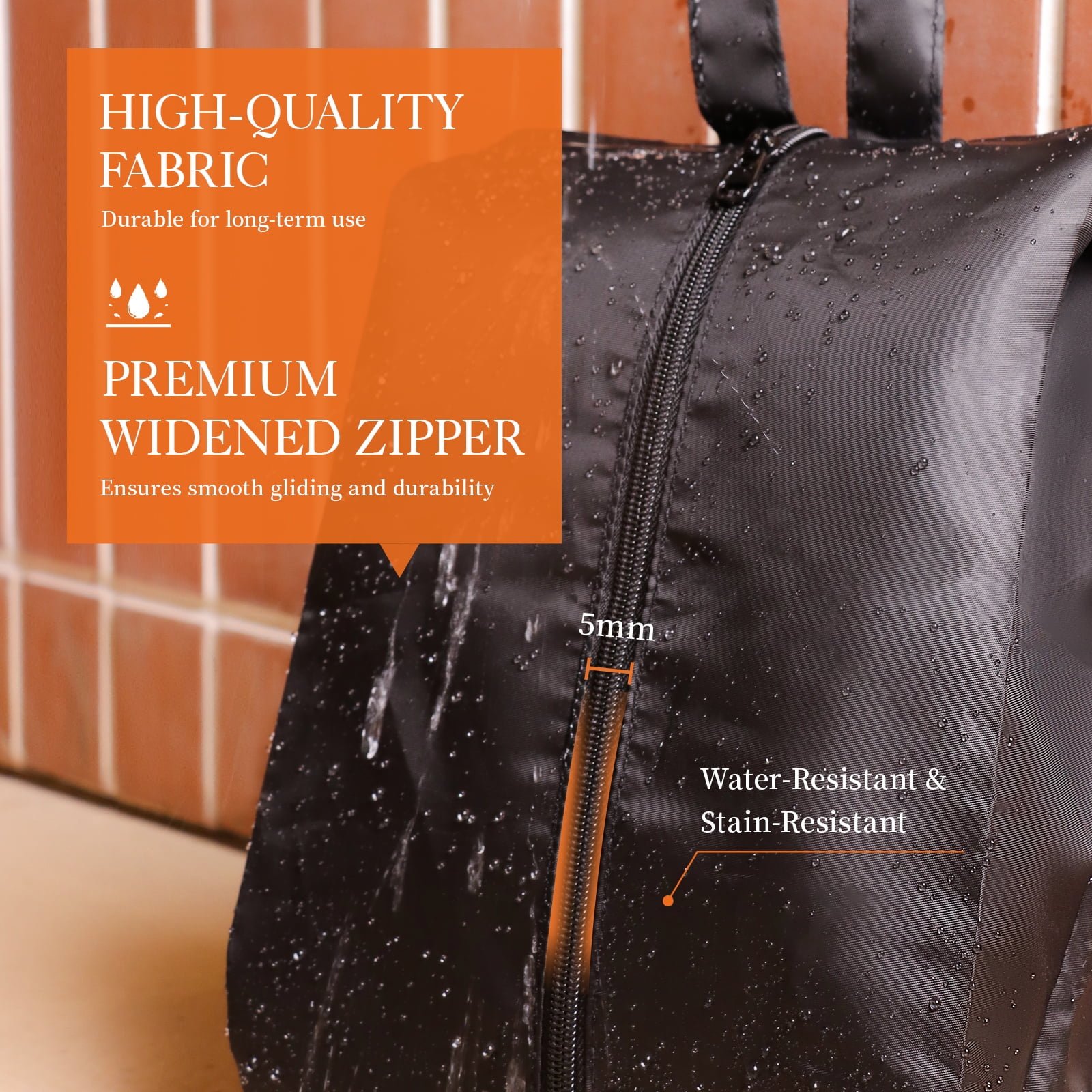 - Premium Material: Crafted from 110g/m² high-density fabric coated with a waterproof layer, it repels dirt and shields your clothes from wrinkles, stains, and moisture.