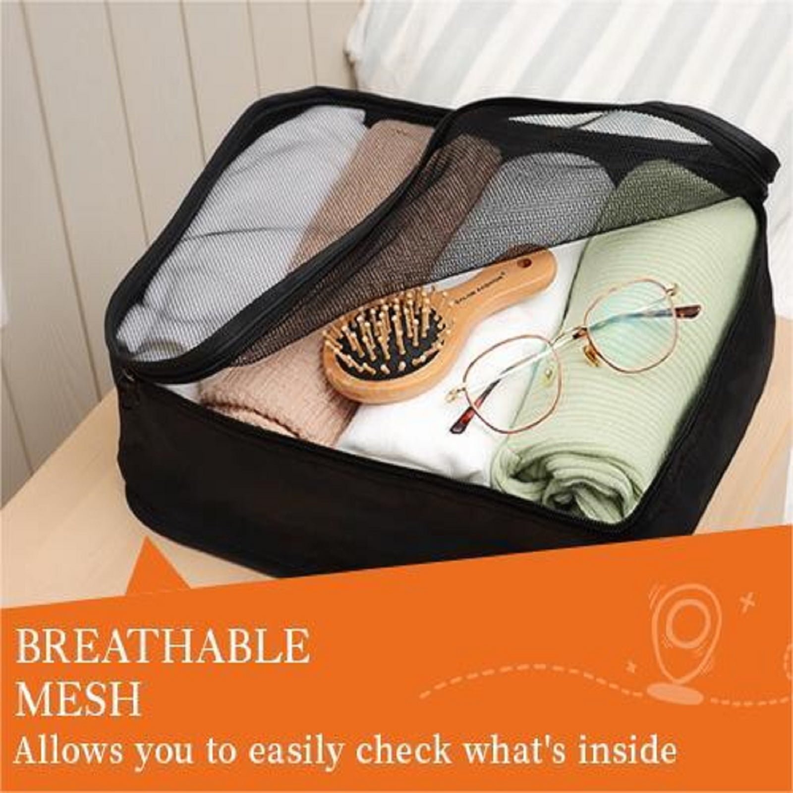 - Breathable Mesh Design: Allows airflow within the cubes, helping to prevent odors and keep items fresh. It also provides easy visibility of the contents, making it convenient to find clothes.