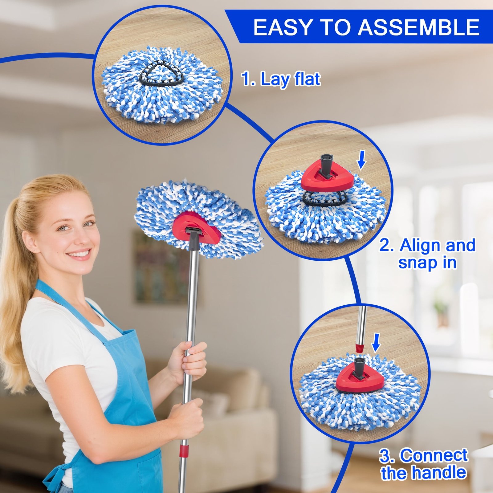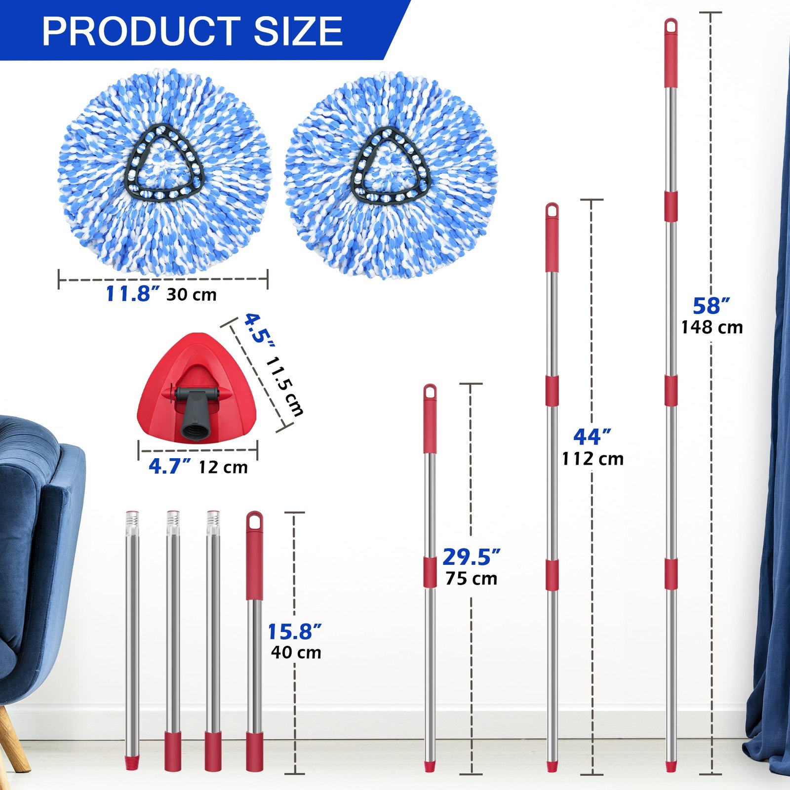 JEHONN Spin Mop Replacement Heads 2 Packs with 58 inches Long Handle and Triangle Base