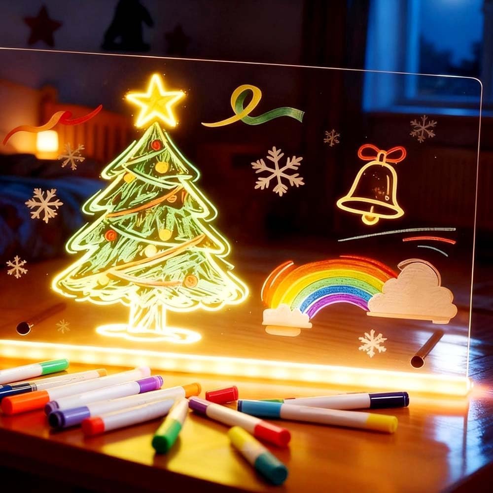 Durable Acrylic & Double-Sided Erasable Surface: Made from premium acrylic, this LED acrylic light drawing board is smooth, scratch-resistant, and double-sided for endless creativity. Its crystal-clear surface wipes clean easily, allowing repeated writing, drawing, and erasing without leaving marks.