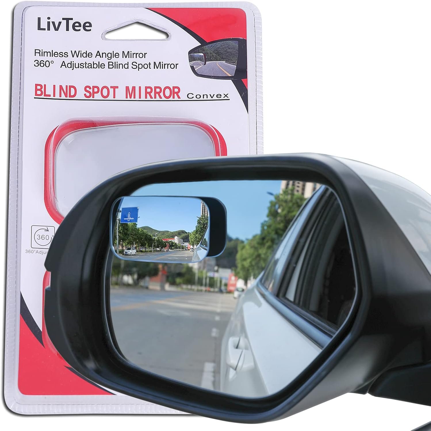 LivTee Blind Spot Mirror, 2"e; Round HD Glass Frameless Convex Rear View Mirrors Exterior Accessories with Wide Angle Adjustable Stick for Car SUV and Trucks, Pack of 2
