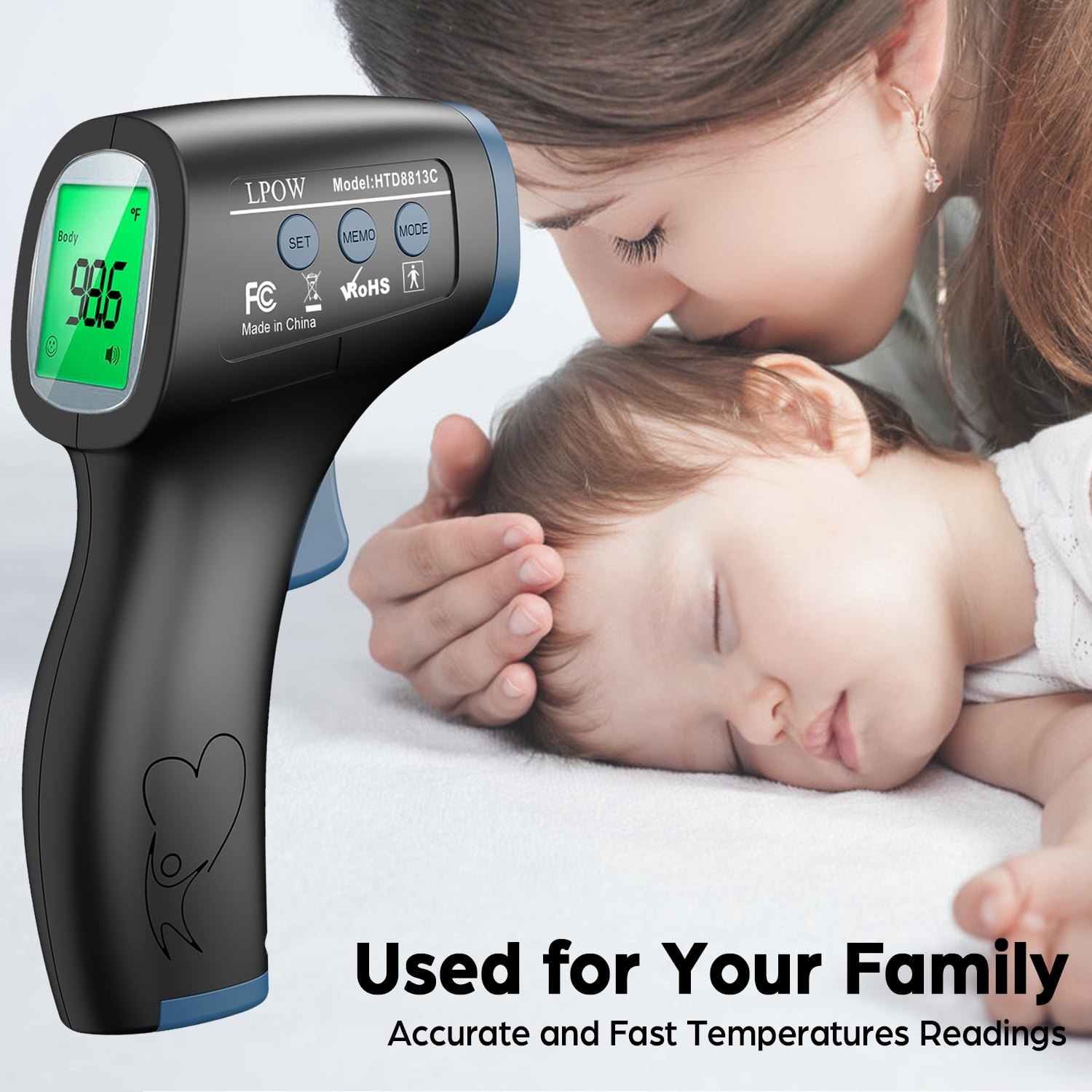 Ensure fast, accurate temperature checks for your whole family with the LPOW Infrared Digital Forehead Thermometer. Designed for all ages — from babies to adults — this non-contact thermometer delivers a 1-second temperature reading, making it ideal for quick checks at home, school, work, or while traveling.