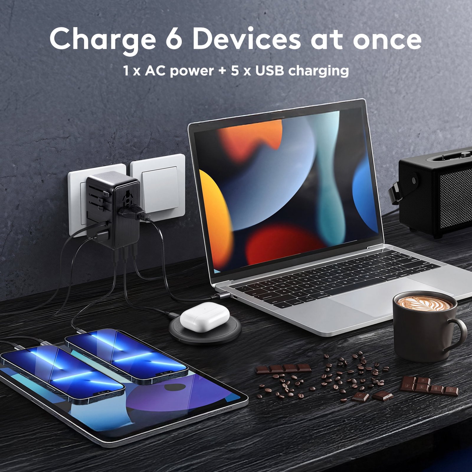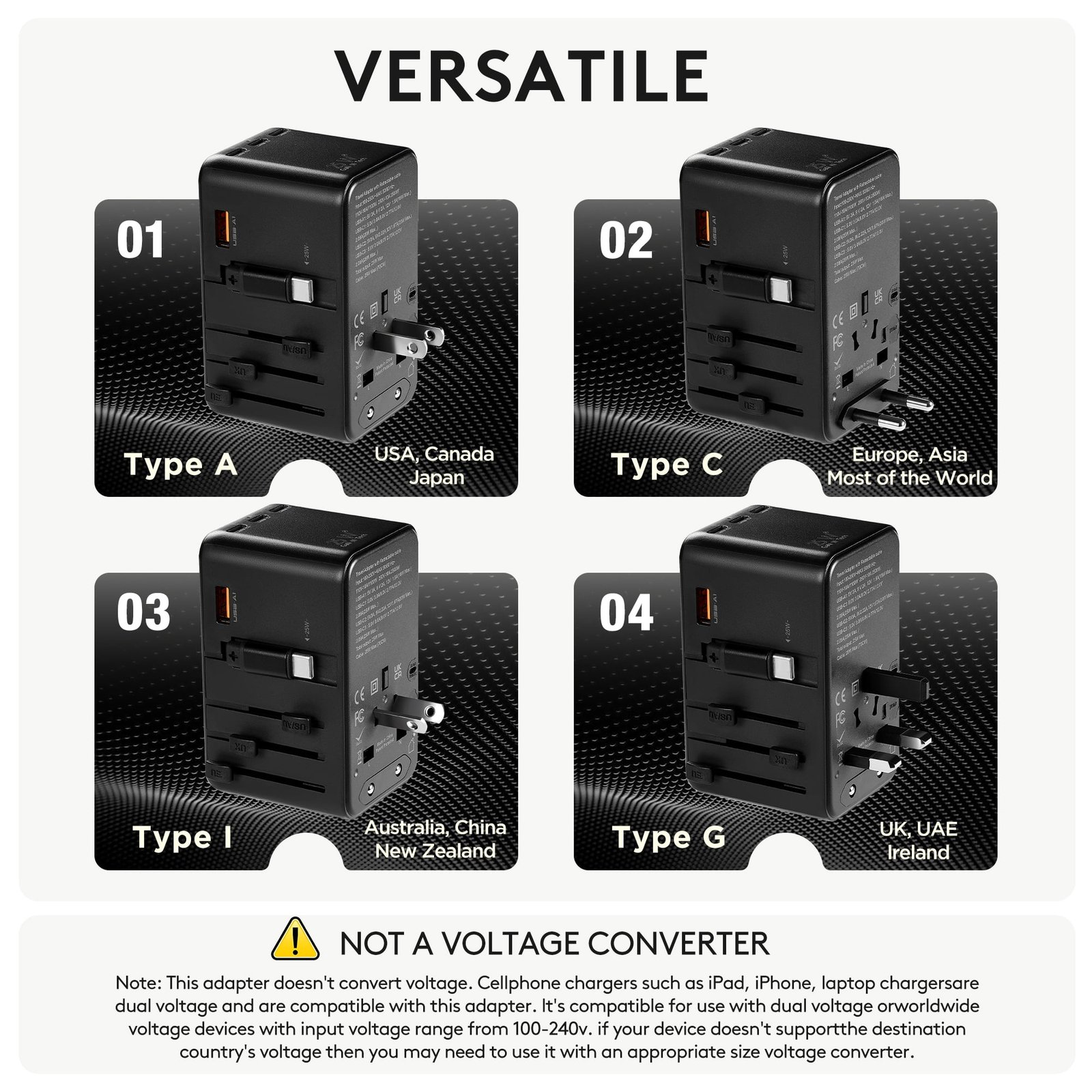 - 【International Compatibility】 This 25W universal adapter for travel could turn 4 different sockets into 1 universal AC outlet and 4 USB ports, charge up to 5 devices at a time; EU/USA/Australia/UK plugs, which can be used in more than 200 countriesType A, Type C, Type G, Type I, and is suitable for charging cell phones, and power banks, giving you a better charging experience on the go.