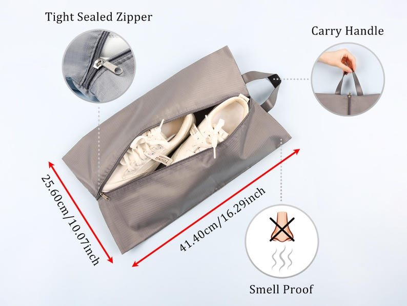 THOUGHTFUL & PORTABLE DESIGN: Travel shoe bag with a sturdy zip, smooth zip closure; The handheld design makes the shoe travel bag more convenient to carry and hang, so you can easily store and access the shoes; Your thoughtful travel must-haves.