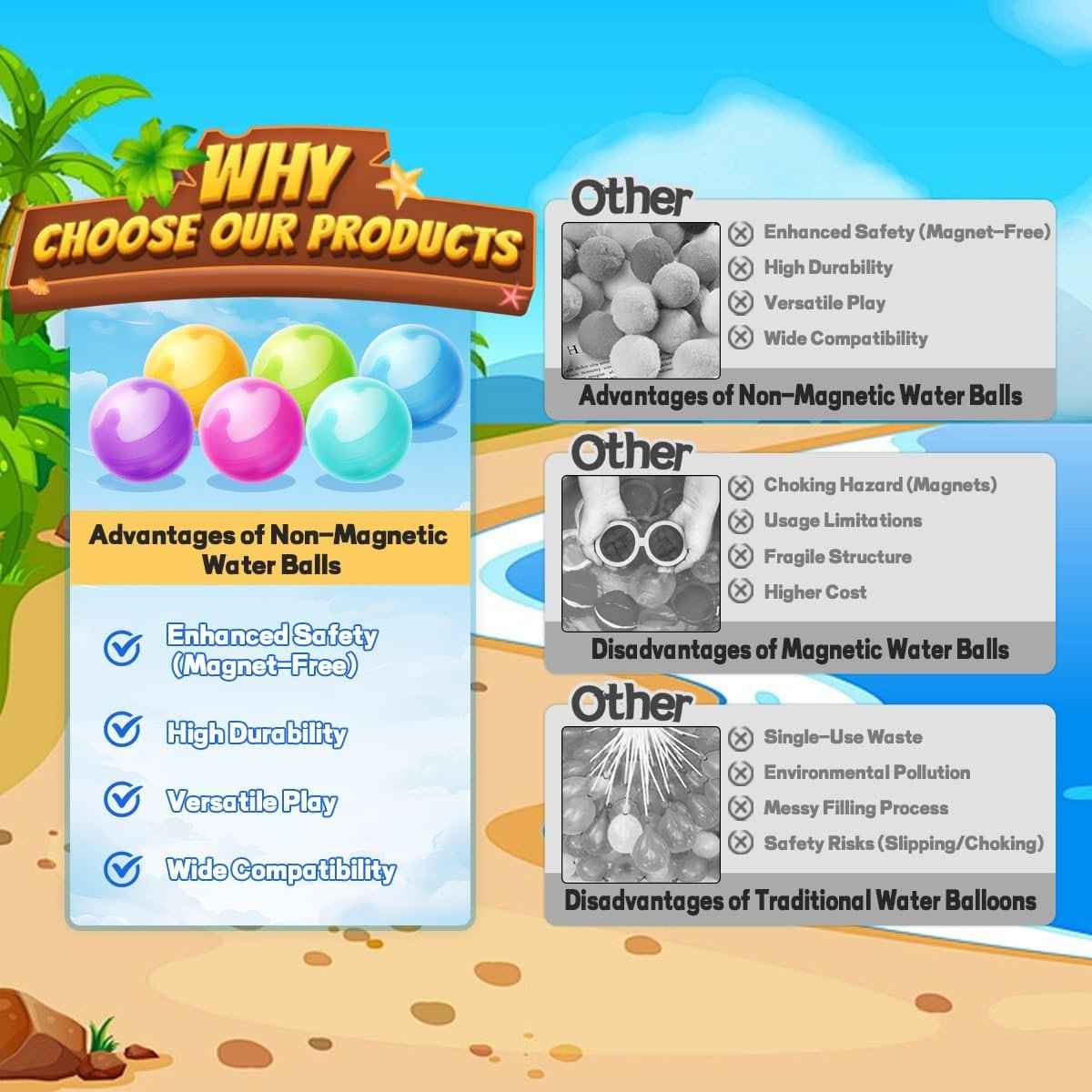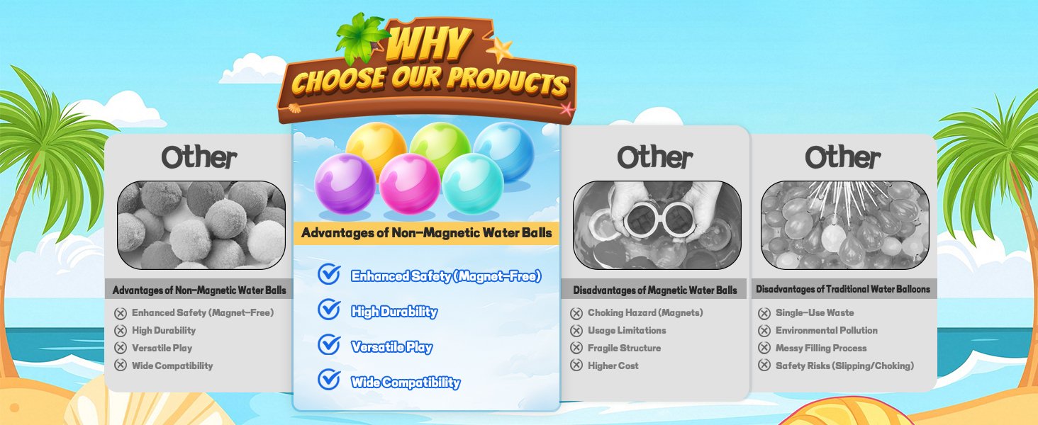 **No Magnets Needed** – Simple and safe to use without magnets, making them easy for everyone to enjoy during water play.