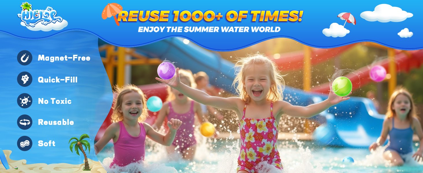 Reusable Water Balloons for Kids – No Magnets, Leak-Resistant Silicone Splash Balls, Quick-Fill & Long-Lasting – Durable Outdoor Water Toys for Summer Pool Party, Backyard Water Games