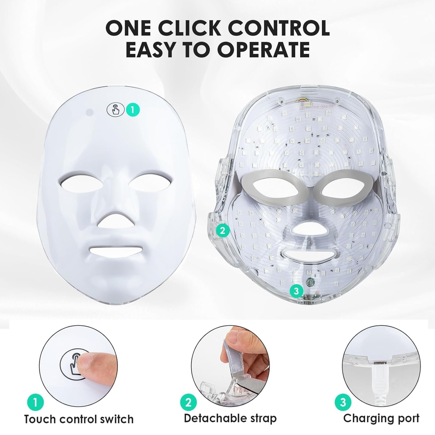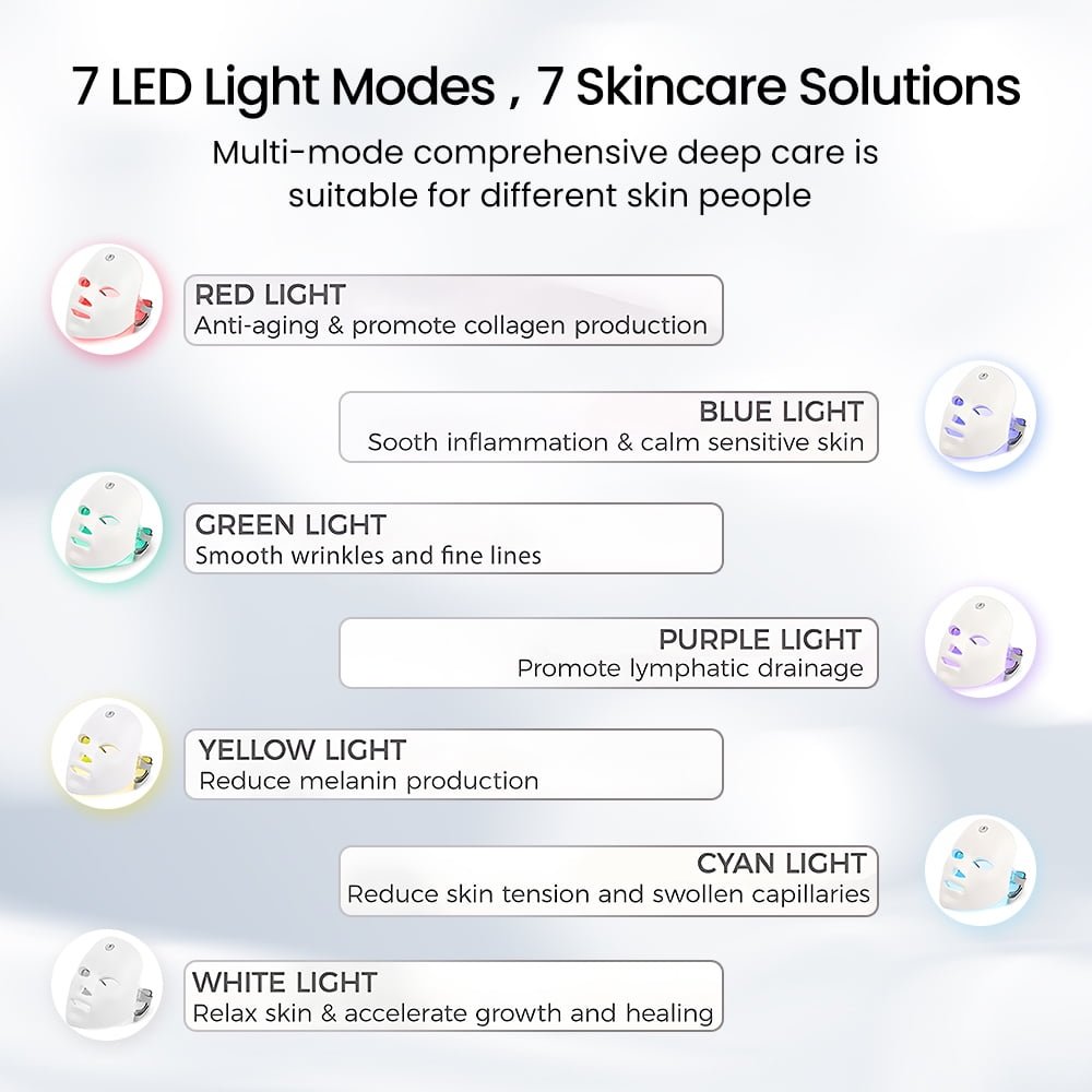 7 LED light modes for multi-skin concerns (acne, anti-aging, brightening, calming)