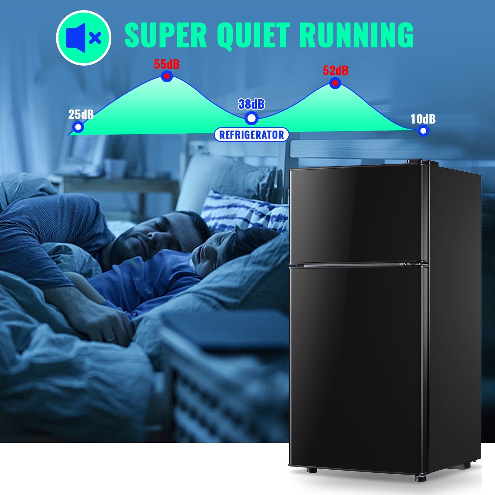- Double Door Versatility: This mini fridge offers a double door design, featuring 1.6 Cu.Ft of refrigerator space for vegetables and a 0.8 Cu.Ft freezer section for meat and ice cream. This provides versatile storage options, allowing you to easily organize and access your fresh and frozen foods, catering to all your refrigeration needs in one convenient unit.