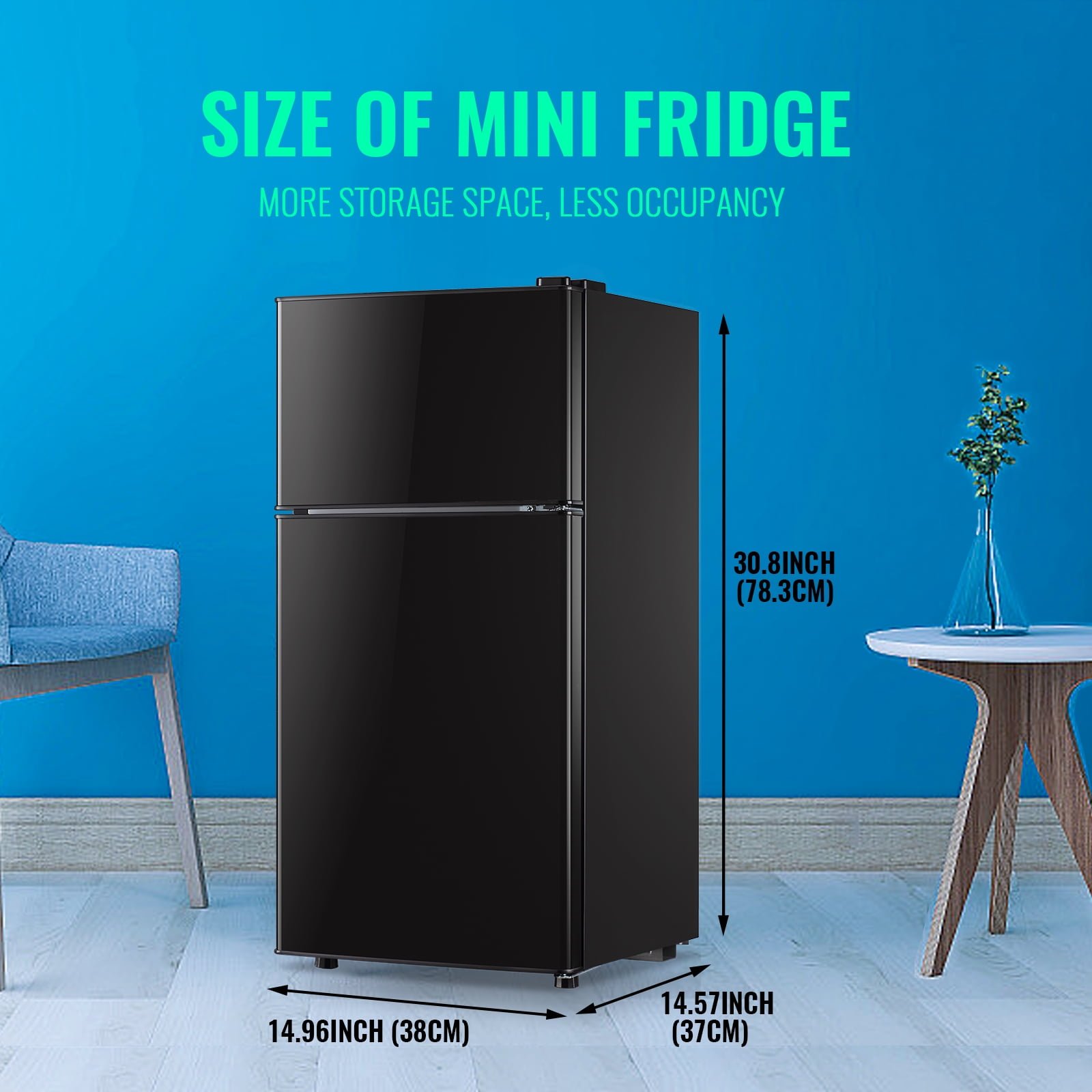 Perfect Fit for Dorms and Apartments: With its sleek dimensions of 14.96*14.57*30.8, this mini fridge offers a space-saving design that perfectly fits into any small space without compromising on storage capacity or performance.