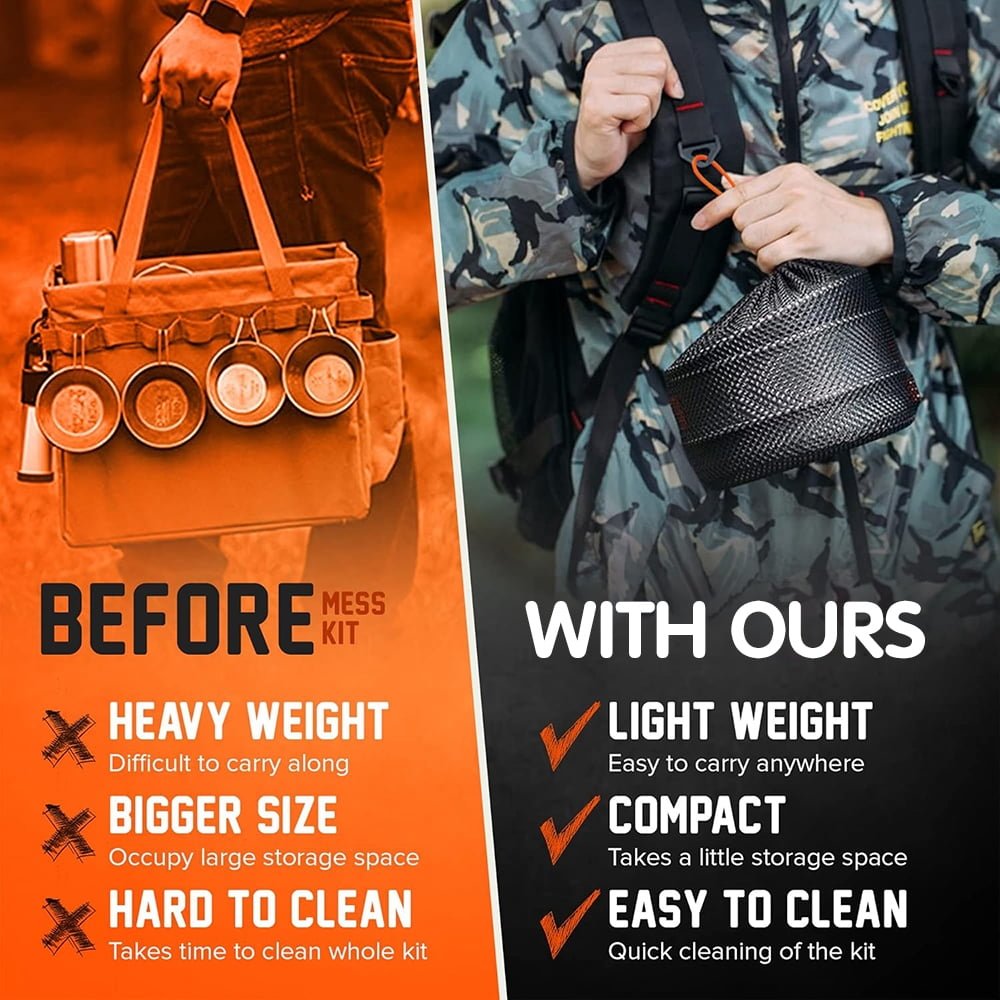 - Lightweight & Space-Saving: All pieces are designed to nest together for easy packing and portability.The included storage bags keep your set organized and prevent any parts from going missing.The practical buckle allows you to hang the cookware for easy access while you’re on the move.